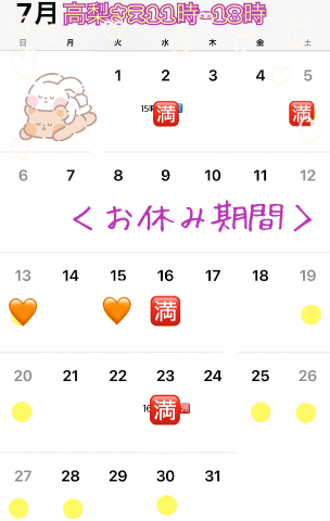 7月21日(月)お休み(姫予約可)