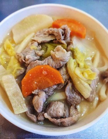今朝は豚汁にうどんを入れて、体がぽかぽか温まりました🍲✨