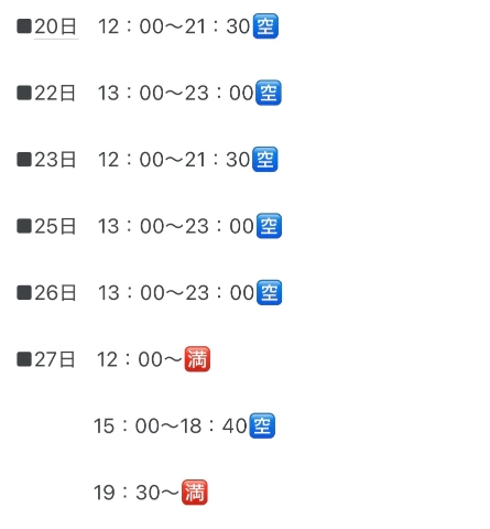 (🆕予約が入り次第まいかが更新してます🙌