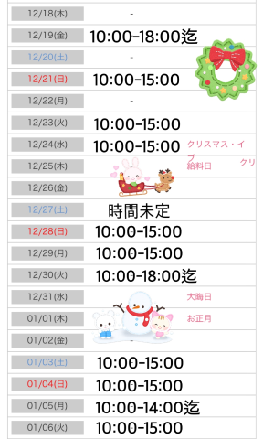 年末年始の予定です