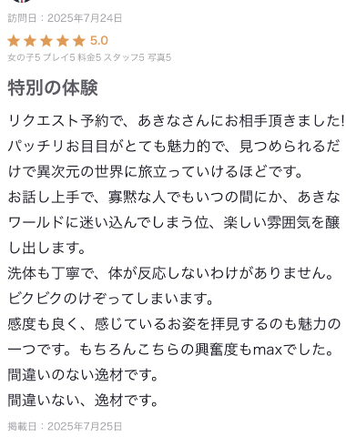 TOP 女の子一覧 出勤表 写メ日記 リアルタイム速報 入浴料+サービス料の総額 口コミ メルマガ キャンペーン アクセスマップ アンダー割 吉原/ソープ ファーストレディ 営業時間:7:00~24:00 定休日:年中無休 電話番号:03-3876-1560 住 所:東京都台東区千束4-41-5 TOP 女の子一覧 出勤表 写メ日記 リアルタイム速報 入浴料+サービス料の総額 口コミ メルマガ キャンペーン アクセスマップ アンダー割 あきな この女の子をフォローする ファーストレディ 写メ プロフィール 写メ日記 口コミ 日付で見る 2025年11月 日 月 火 水 木 金 土 1 2 3 4 5 6 7 8 9 10 11 12 13 14 15 16 17 18 19 20 21 22 23 24 25 26 27 28 29 30 お礼💞 25/08/08 12:49 女の子とお店をフォローします いいね! 満点💞💞嬉しい…💋一緒に楽しんでくださる才能があるご紳士さまありがとうございました💞またきっとお会いしたいです🩷 女の子とお店をフォローします いいね! この日記をXに投稿する この女の子の口コミを書く ログインメールアドレス パスワード ログイン状態を保持する 無料会員登録 × 閉じる この女の子をフォローする 1つ新しい日記へ 1つ前の過去の日記へ あきなの写メ日記一覧へ戻る 前の女の子 次の女の子 1人がこちらの女の子を検討中です ログインをしてもっとお得にネット予約 ログインID パスワード ログイン状態を保持する 無料会員登録 SNS会員様はこちらからログインしてください 閉じる × いいね!するにはログインが必要です いいね!すると女の子にあなたが いいねしたことが伝わります 女の子とお店を自動的にフォロー するのでアクセスが簡単になります ログイン 初めてのご利用ですか? 会員登録(無料)はこちら
