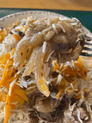 (お米にお肉、玉ねぎ、にんじん、そしてスパイスをたっぷり入れて炊き上げる伝統料理✨)