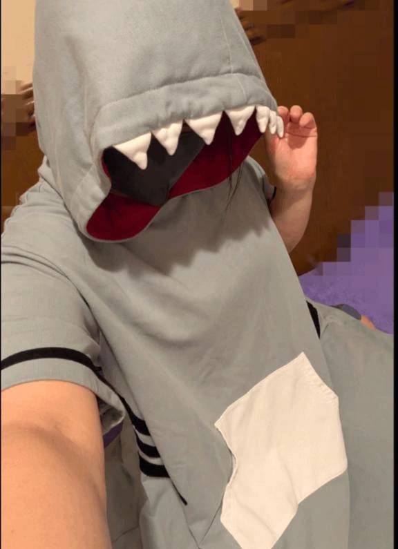 明日のお衣装ですが朝からサメパーカー着てます