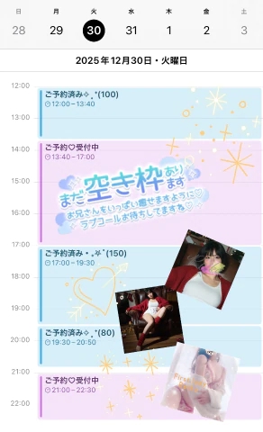 *12/30(火)ご予約状況の