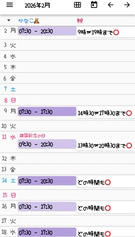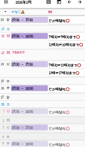 2月の出勤予定🗓