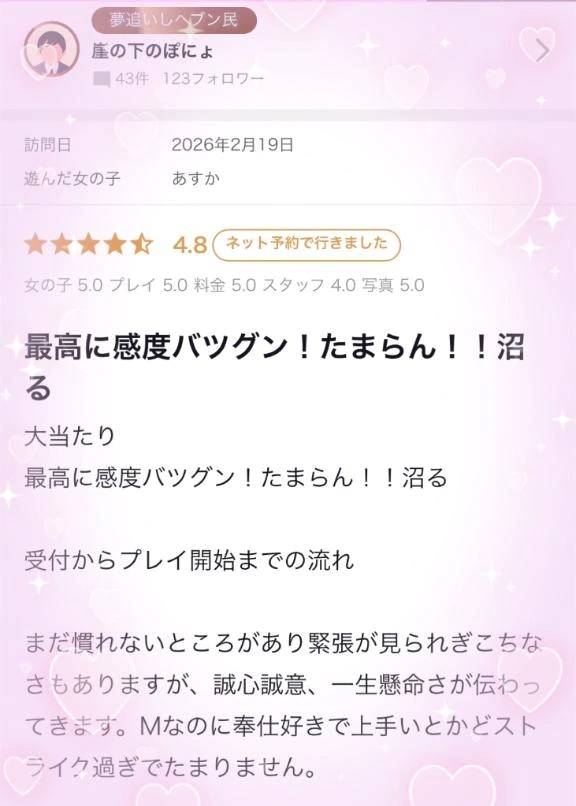TOP 女の子一覧 出勤表 写メ日記 リアルタイム速報 入浴料+サービス料の総額 口コミ メルマガ キャンペーン アクセスマップ アンダー割 吉原/ソープ ファーストレディ 営業時間:7:00~24:00 定休日:年中無休 電話番号:03-3876-1560 住 所:東京都台東区千束4-41-5 TOP 女の子一覧 出勤表 写メ日記 リアルタイム速報 入浴料+サービス料の総額 口コミ メルマガ キャンペーン アクセスマップ アンダー割 あすか この女の子をフォローする ファーストレディ 出勤予定 14:00~00:00 写メ プロフィール 写メ日記 口コミ 日付で見る 2026年02月 日 月 火 水 木 金 土 1 2 3 4 5 6 7 8 9 10 11 12 13 14 15 16 17 18 19 20 21 22 23 24 25 26 27 28 【お礼写メ日記】 26/02/20 20:36 女の子とお店をフォローします いいね! こんなに沢山お褒め頂きとても嬉しいです✨✨💖またお愛できますように❤️それまで身体に気をつけてお過ごしくださいませ🍀あすか 女の子とお店をフォローします いいね! この日記をXに投稿する この女の子の口コミを書く ログインメールアドレス パスワード ログイン状態を保持する 無料会員登録 × 閉じる この女の子をフォローする 1つ新しい日記へ 1つ前の過去の日記へ あすかの写メ日記一覧へ戻る 前の女の子 次の女の子 0人がこちらの女の子を検討中です ログインをしてもっとお得にネット予約 ログインID パスワード ログイン状態を保持する 無料会員登録 SNS会員様はこちらからログインしてください 閉じる × いいね!するにはログインが必要です いいね!すると女の子にあなたが いいねしたことが伝わります 女の子とお店を自動的にフォロー するのでアクセスが簡単になります ログイン 初めてのご利用ですか? 会員登録(無料)はこちら
