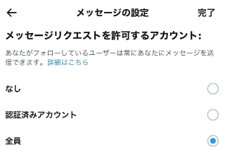 メッセージリクエストを許可するアカウント:全員を選択