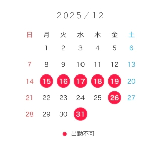 確実に出勤不可避は赤印です🔴