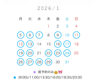 1/9(土) (9:00🉑)11:00/13:30/16:00/18:30