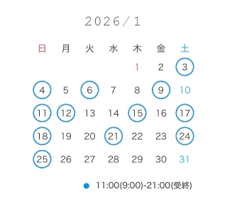 丸がついていない日でも時間によって出勤可能ですのでお問い合わせください💌