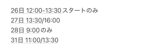 26日 12:00/14:00/16:00/18:30/20:30