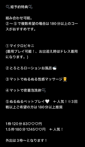 当日の姫予約はLINEかGmailにてご連絡お願いいたします🙇♀️