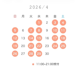 ・希望日(11:00/13:30/15:30/18:00/20:00)