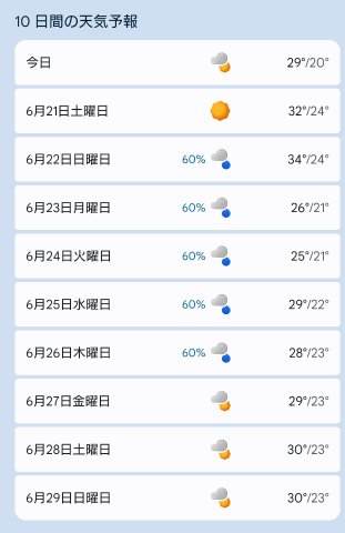 梅雨前線の影響で雨マークが