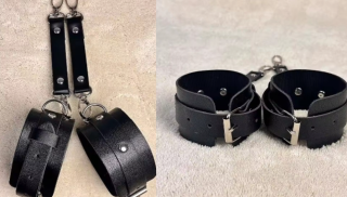 手枷、足枷、口枷、首輪、鼻フック、鞭