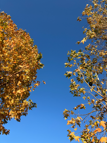 これは、なんか綺麗だなあって見上げて、ふと枯葉の散りかたに差があるなって思って。