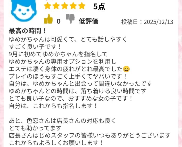 本指名様が素敵な口コミを