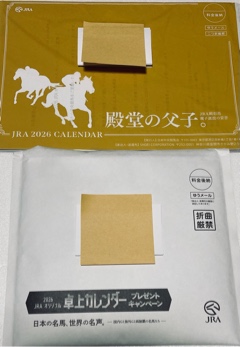 有馬の翌々日に上の茶色の袋のカレンダーが届いたの