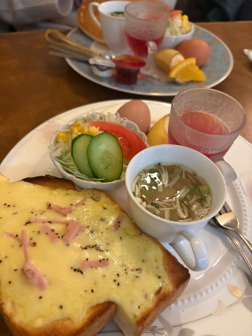 あめがチーズトースト、りんちゃんがホットケーキ頼んだ????