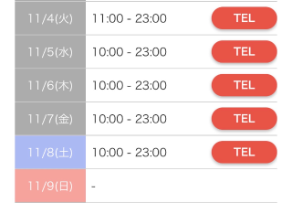営業時間:当日予約:10:00~23:00