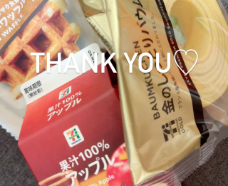 今はバウムクーヘンとジュースを