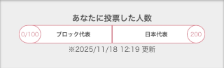 100人からの投票でブロック代表、200人からの投票で日本代表バッジがもらえて